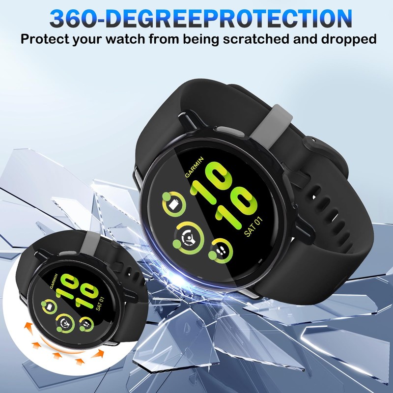 - After-sale Service:2 pack screen protector case for Garmin vivoactive 5, dust plug*2 and installation packages.(Note:The case does not support swimming as water can pool underneath the case, if you forget to remove it, you can wipe it off with a dry cloth). If you have any questions about our screen protector case, please contact us at the first time, we will solve your problem as soon as possible