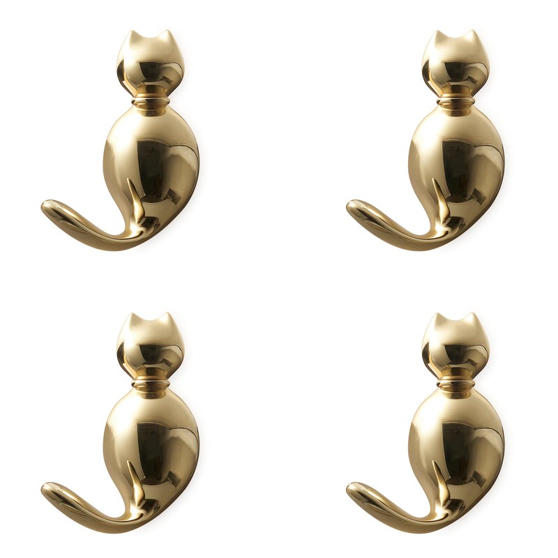 RIXIGOOD Decorative Wall Hooks Cute Cat, Coat Hooks Wall Mount for Hanging Key Purse Hat Robe Clothes Towel Hook for Bathroom Shower Closet Mudroom Unique Hanger Animal Wall Decor Gold 4 Pack