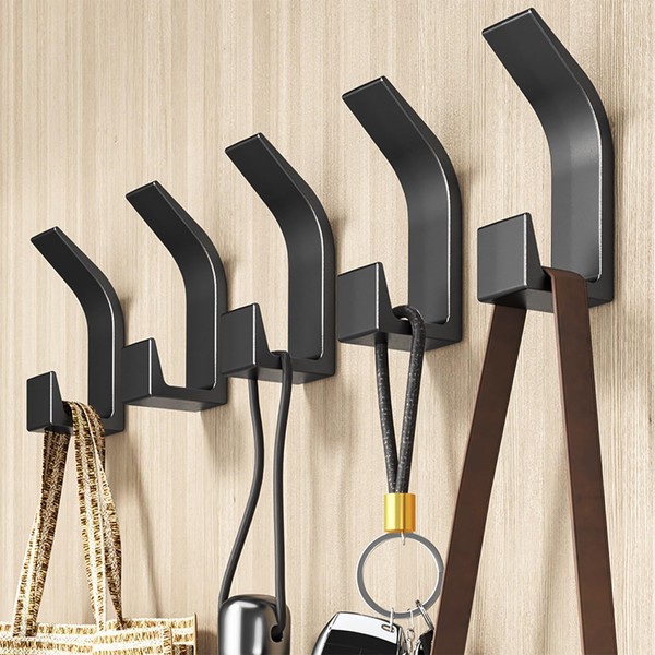 Rixotix 5 Pack Black Coat Hooks,Durable Wall Mounts for Coats,Bags, and Decor - Easy to Install with Modern Design
