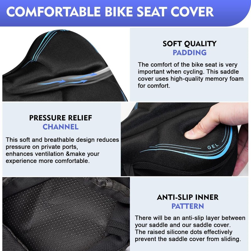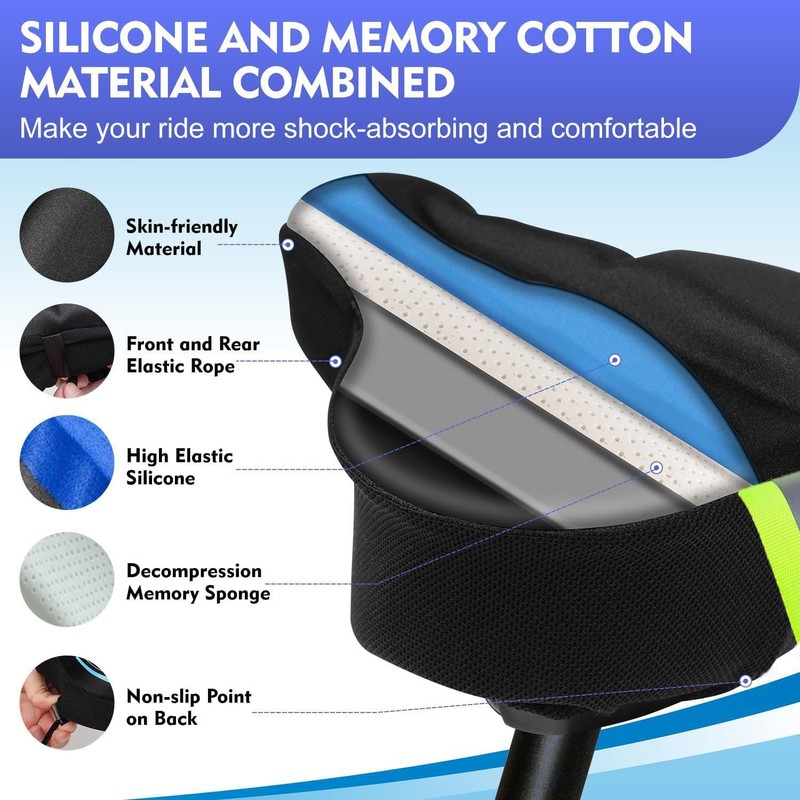 - High-quality materials: the gel bicycle seat cover is filled with memory foam and highly elastic silicone, which can also return to its original shape after pressing and turning. At the same time, it makes the saddle cover soft and elastic and does not cause pain even when sitting for a long time, giving you a wonderful cycling experience.