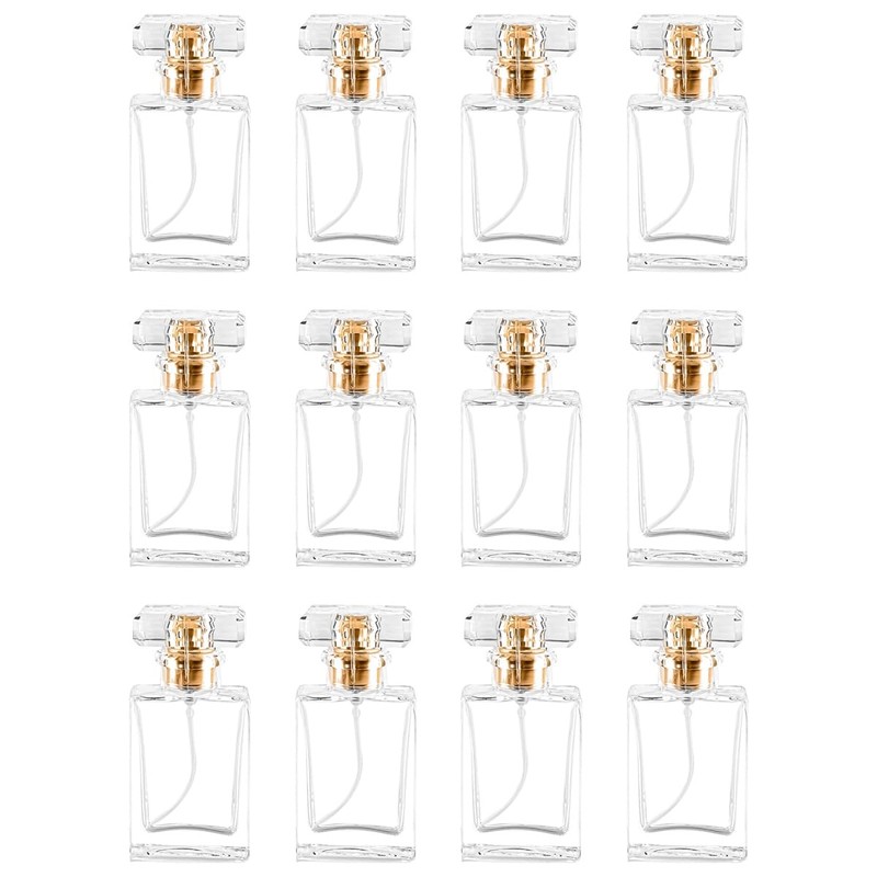 Rixoxo Empty Perfume Bottle Refillable 12PCS 50ml Glass Clear Travel Spray Atomizer Container Perfume Fine Mist Spray Pump Bottle Dispenser for Essential Oil Liquid (Square 50ml-12PCS)