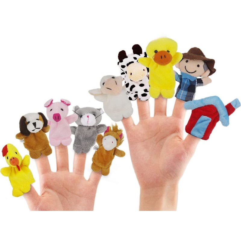 - Each set has 10Pcs Lovely Finger Toys: chook & bears & cow & mouse & duck & dog & pig & famer & house