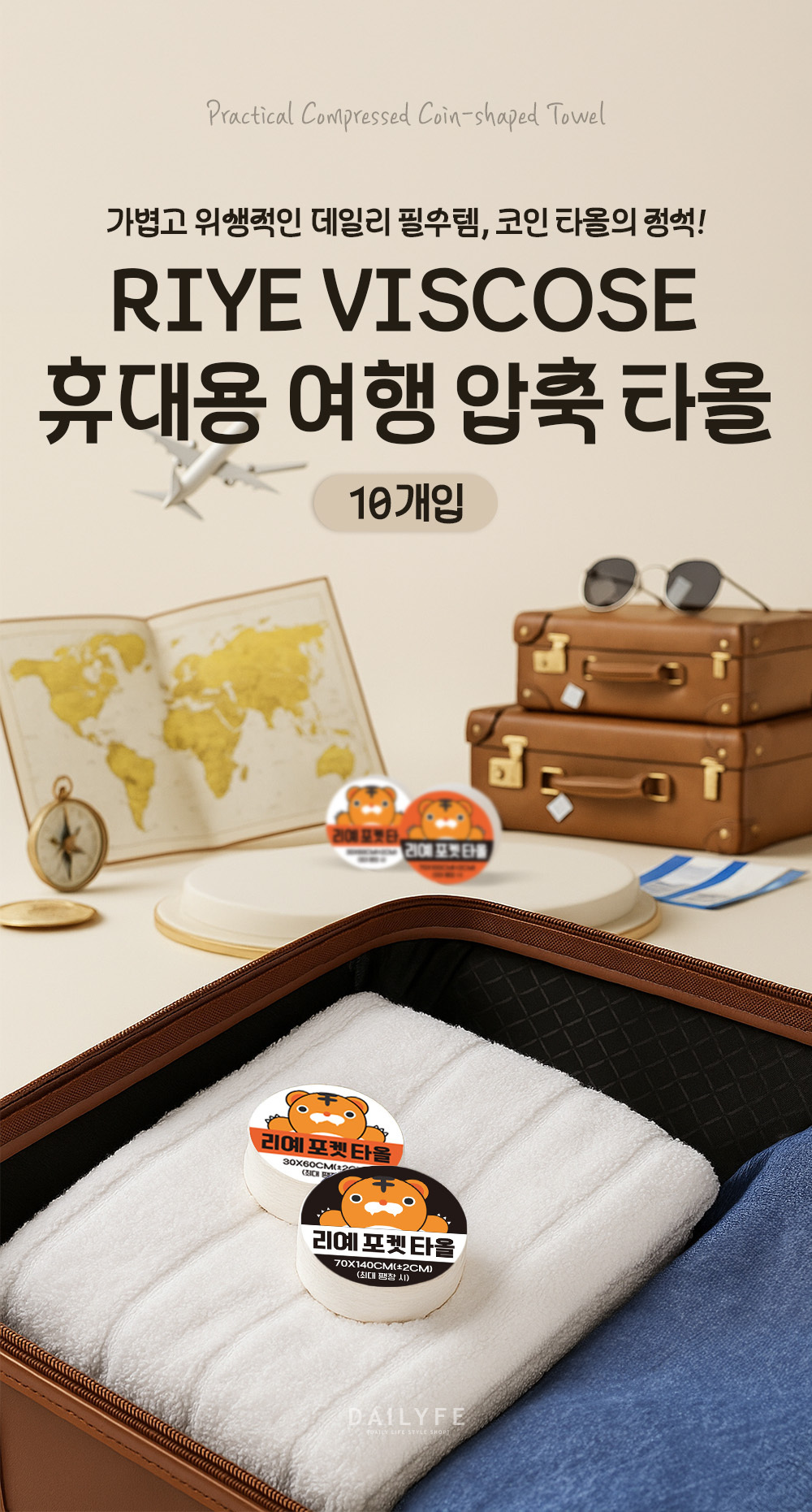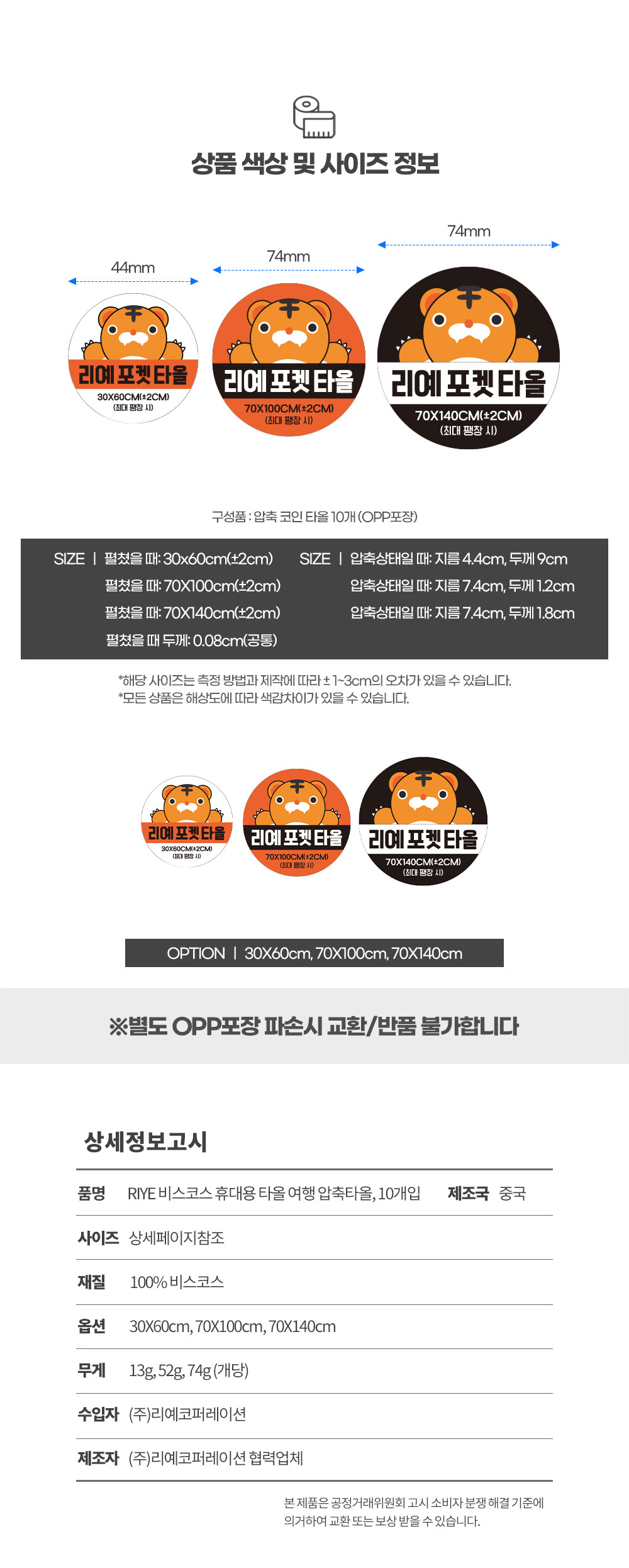 RIYE viscose portable towel travel compressed towel 10 pieces 30x60CM 3ea