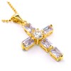 RIZILIA Cross Pendant with 18" Chain & Rectangular Cut CZ [Simulated Tanzanite] in Yellow Gold Plated, Simple Modern Elegant