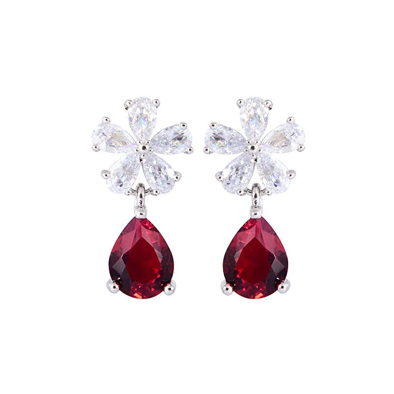 - [Metal and Gemstones]: Environmentally friendly brass (NICKEL FREE) with 18K White Gold Plated. Simulated Red Ruby are used. Main gemstone size is 9mm(0.4")x7mm(0.3")x1