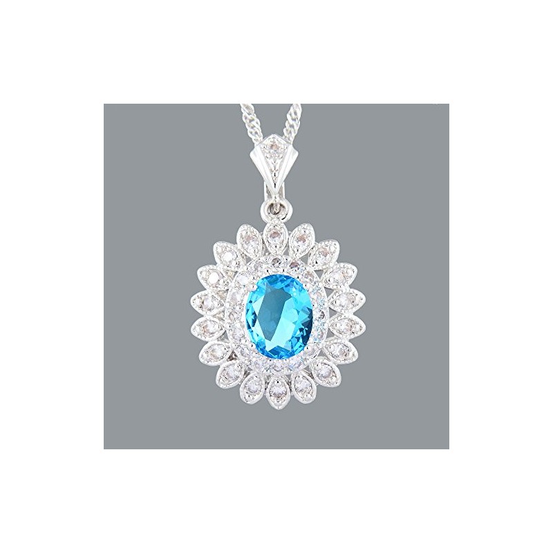 RIZILIA Sunflower Pendant with 45cm(18") Chain & Oval Cut Gemstones CZ [Aquamarine] in 18K White Gold Plated, Simple Modern Elegance