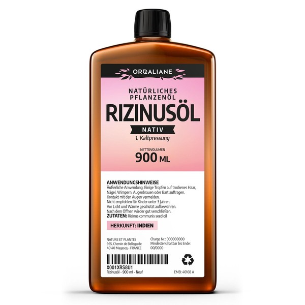 Rizinusöl 900 ml - 100% nativ - kalt gepresst - Ricinus Communis - Orgaliane