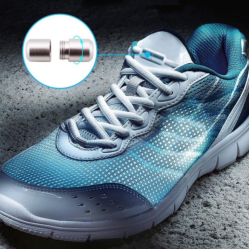 - Never need to tie shoelaces: with the help of the metal capsules, you can put on your shoes in seconds. Easy is an elastic shoe laces with lock when you wear a few sports school. They no longer affect by a pair of laces. You win with the competition whether you participate in your local park racing or the marathon.