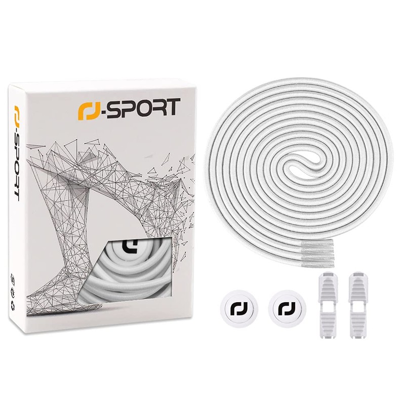 RJ-Sport Elastic Quick Release Shoelaces, Fast Lacing System for Unique Comfort and Strong Hold, white, 120