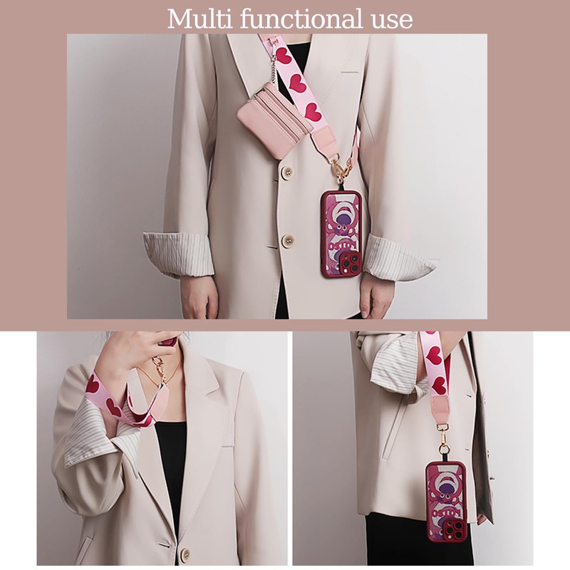 • 【Phone Strap with Wallet】Clip and Go Strap for Phone with Wallet Crossbody can be converted into a crossbody bag, wristlet, or used as a fashion strap on a purse. Each set includes a cell phone card that fits almost any smartphone case. It is also compatible with any model Phone. Adjustable cell phone straps range from 34'' to 52'' in length; remove the attachment to change it from a crossbody chain to a bracelet.