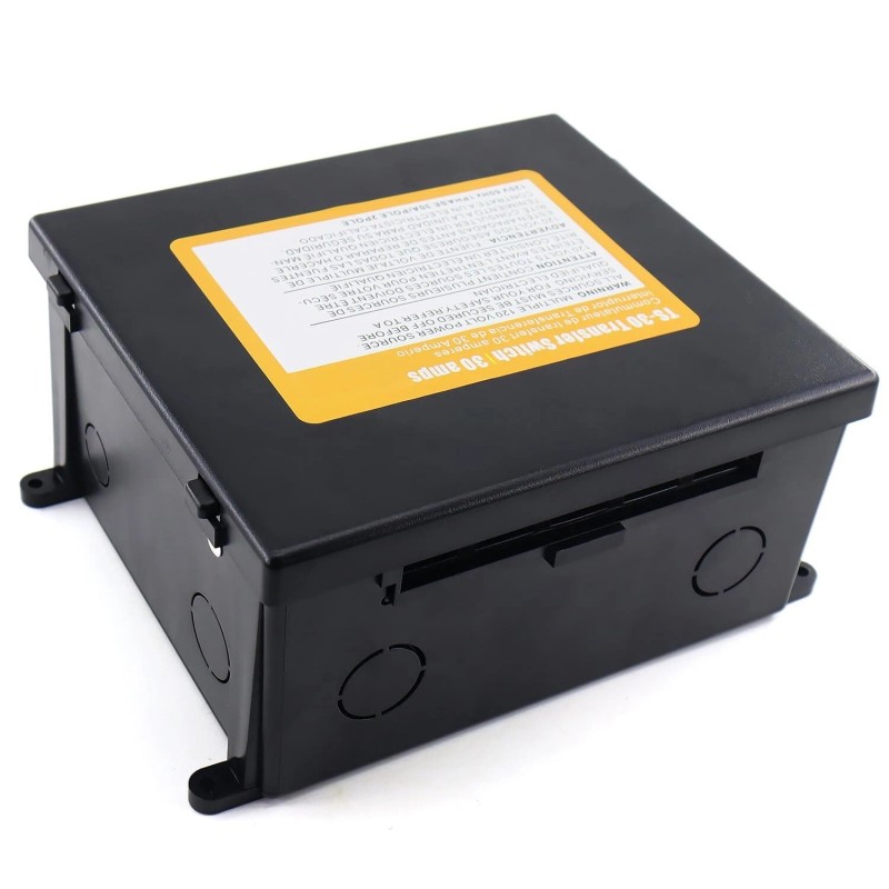- 30 amp Transfer Switch provides automatic power switching between two separate 120 volt AC input sources.