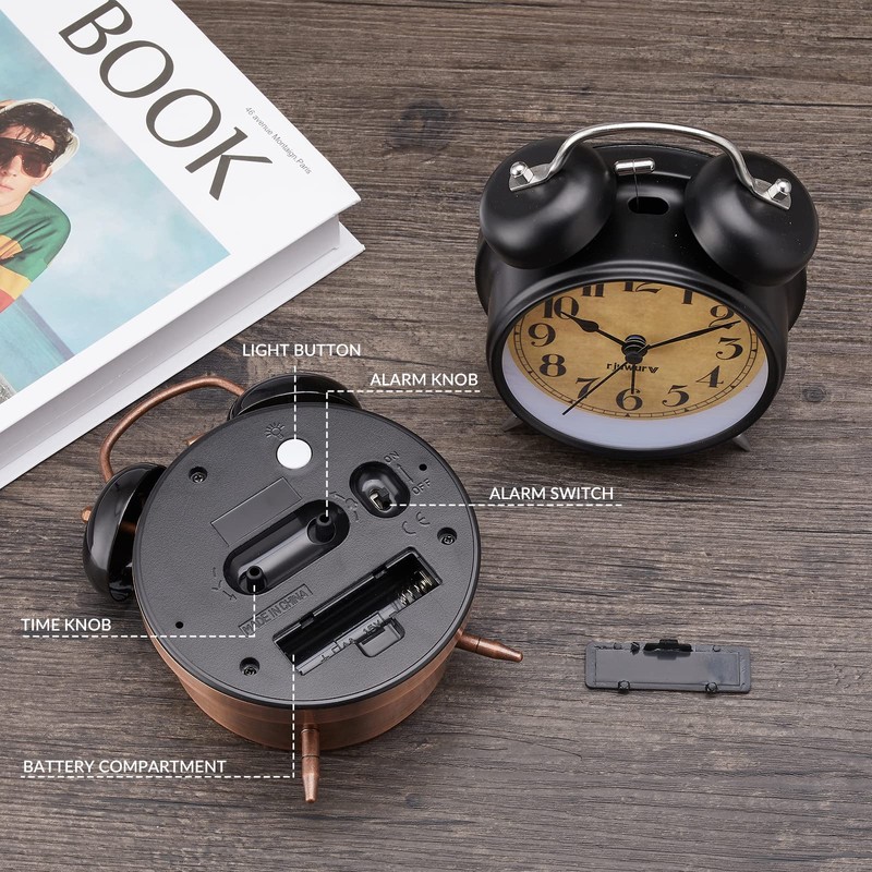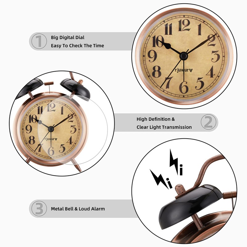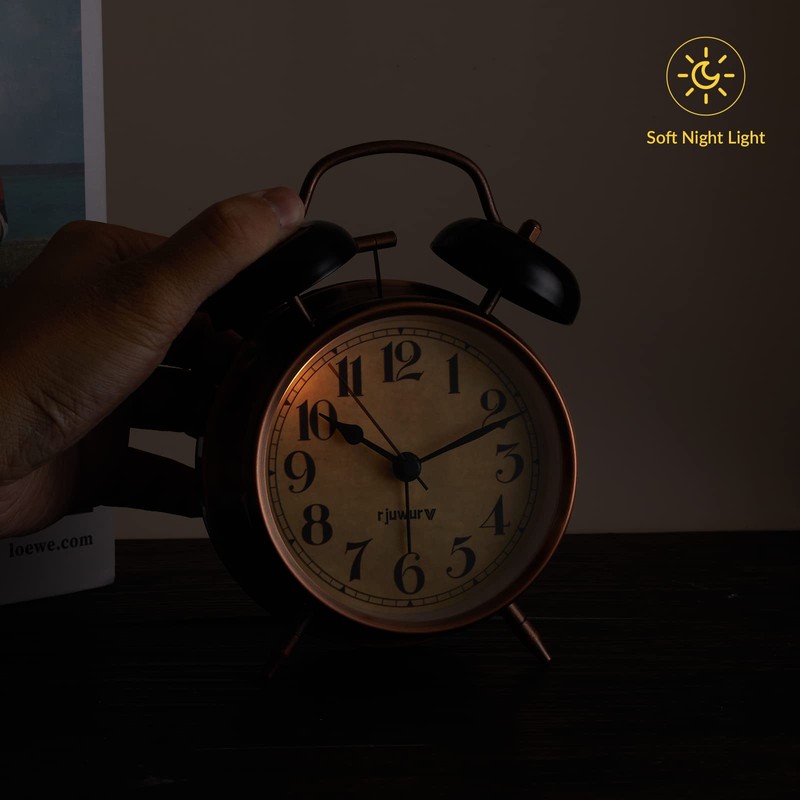rjuwurv 4" Loud Alarm Twin Bell Alarm Clock, Night Light, Desk Clock Table Alarm Clock Bedroom Alarm Clock(Bronze)
