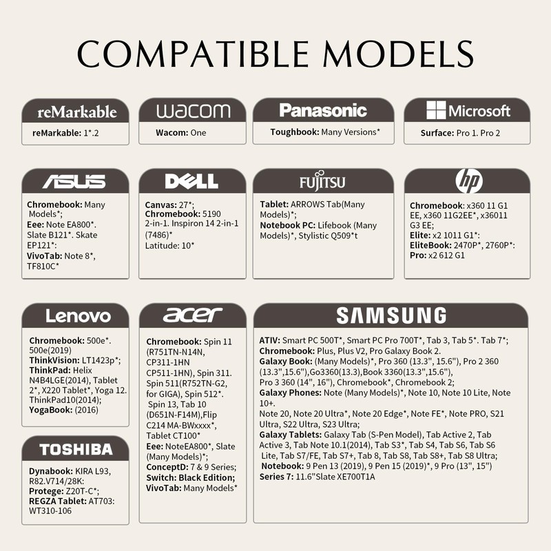 • 【Compatibility】The RKItE EMR Stylus is compatible with all EMR screens, such as Remarkable Pen & reMarkable 2 Pen / Kindle Scribe Pen / Microsoft Surface Pro & Go & Slim/ Samsung Galaxy Tab S6 Lite/ S7 & S7 Plus/ S8 & S8 Plus & S8 Ultra/ S9 FE & S9 Plus & S9 Ultra / S10 & S10+ & S10 Ultra/ reMarkable 2 10.3 Inch / reMarkable Tablet / reMarkable 2 Paper Tablet / Remarkable Stylus & Remarkable 2 Stylus & remarkable Marker Plus Pen / Surface Pro 1 & Surface 2 / Dell & Lenovo Chromebook / ThinkPad etc