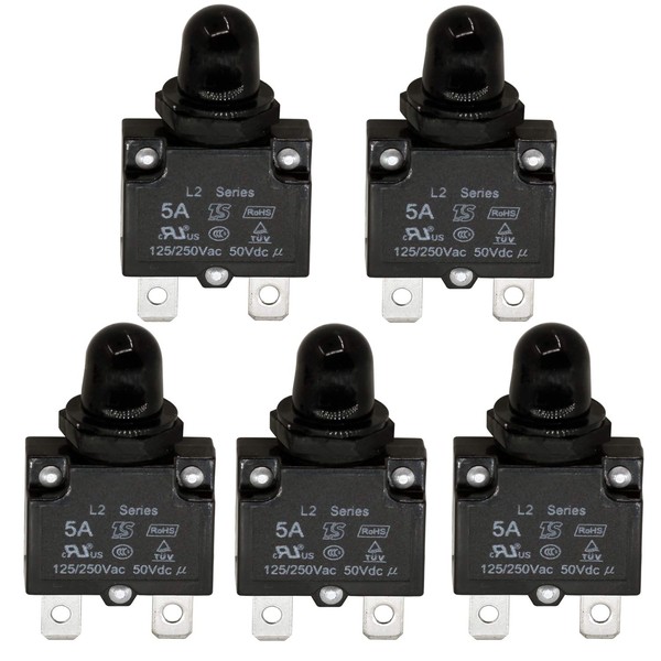 RKURCK 5Amp Circuit Breakers with manual reset Waterproof Button Black Cover DC50V AC125-250V with Quick Connect Terminals