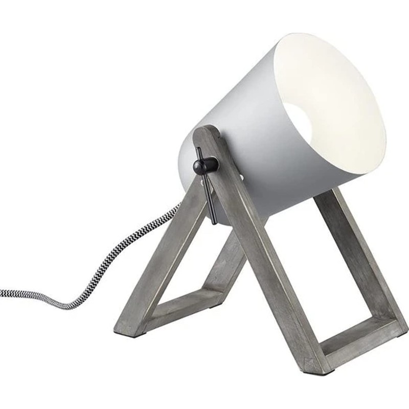 • Tischleuchte Marc mit einem Holzgestellt in der Farbe Grau und einem Metall-Schirm grau