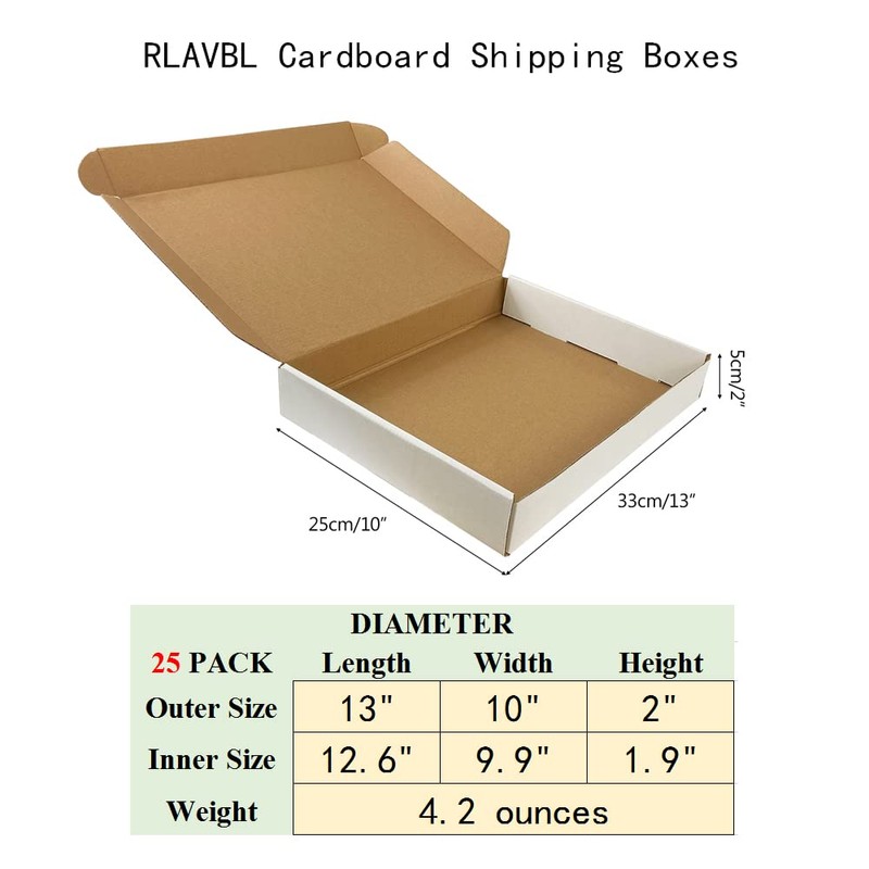 - DIMENSION: The shipping boxes set includes 25 packs of the cardboard box. The size of this small moving box is 13” x 10” x 2”(L x W x H), suitable for packing or mailing those small and lightweight items.
