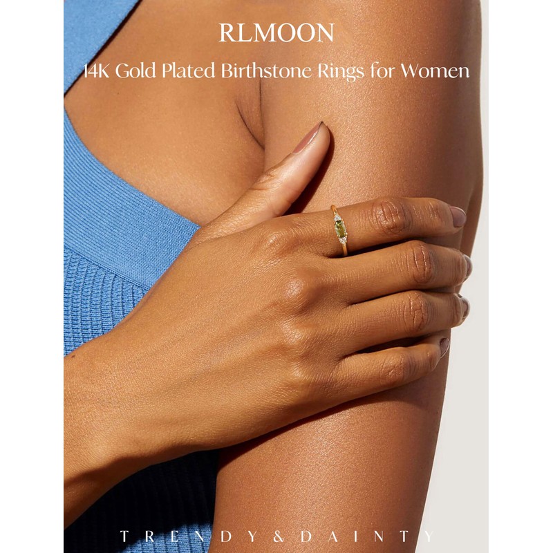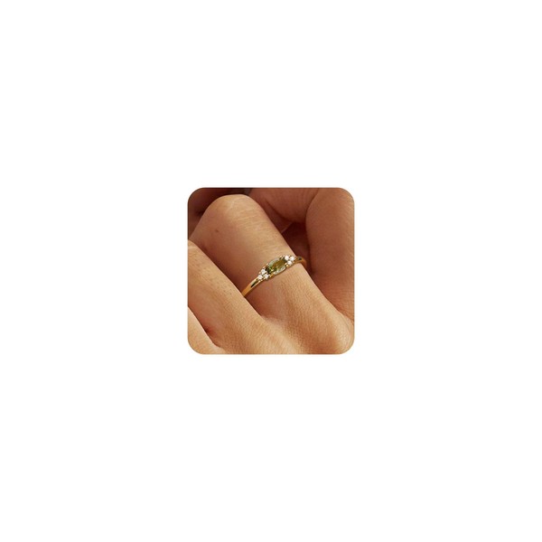 RLMOON Gold Birthstone Rings for Women Non Tarnish Trendy Stackable Gold Rings that Don't Tarnish Dainty Emerald Green Cubic Zirconia Wedding Ring for her Birthday Gifts Size 6