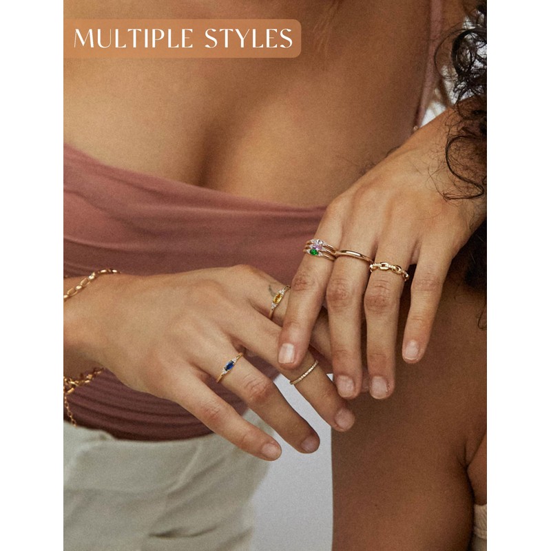 - 14K GOLD PLATED RINGS: The dainty gold ring consists of 12 colors of cubic zirconia and 14K gold plated copper without nickle and lead, don't turn your finger green, hypoallergenic. It’s a perfect gift for mom, wife, grandmother, bride, bridesmaid, best friend or yourself, and the generous and simple designs will never go out of style.