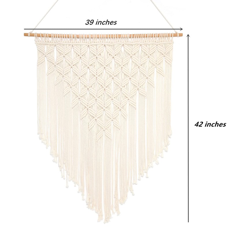 - Size: 39 inches long for the wood stick. It is 42 inches from wood rod to the ends of longest fringe, perfect wall art and the essential decoration for home