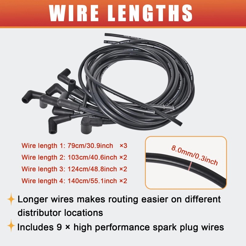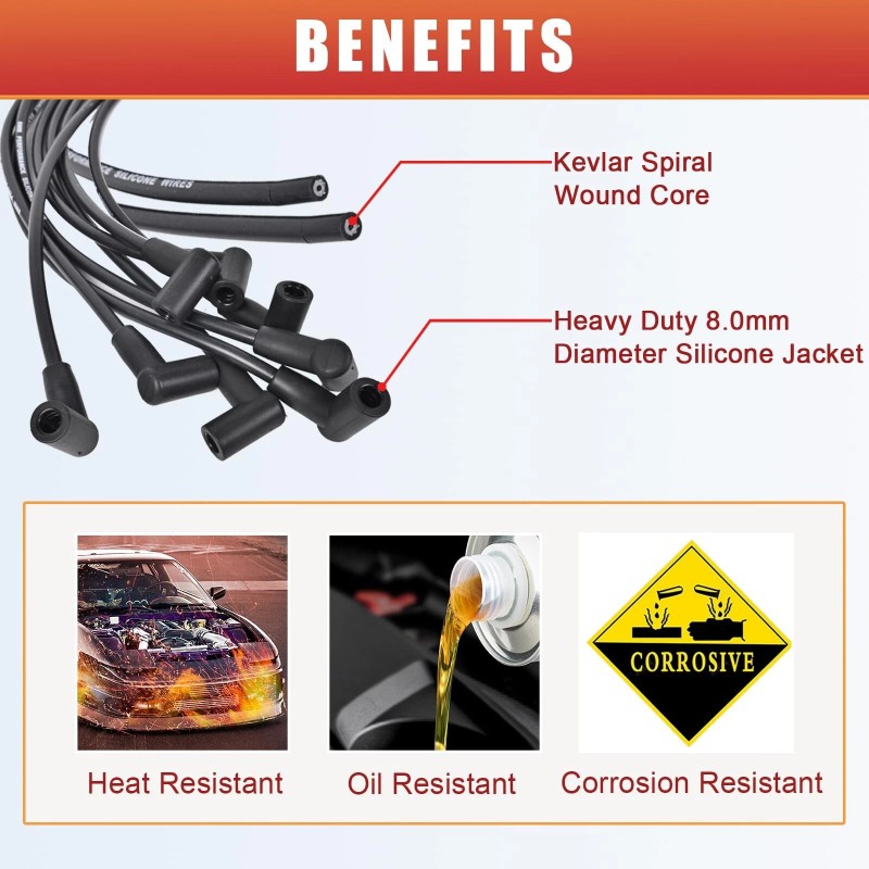 - Package Includes - 8* 8.0mm Silicone Spark Plug Wires.
