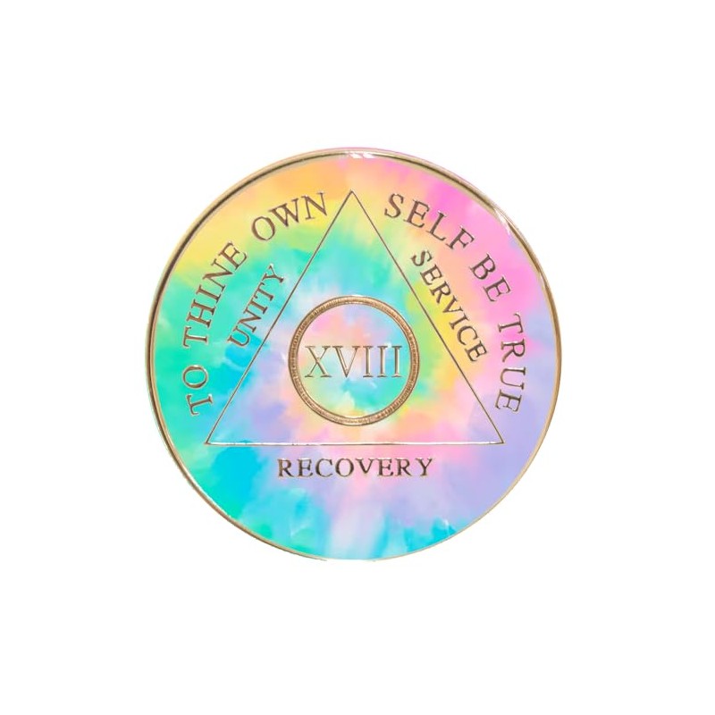 RM AA Chip | Sobriety Coin | Recovery Gift | Tie-Dyed AA Medallion (18 Years)