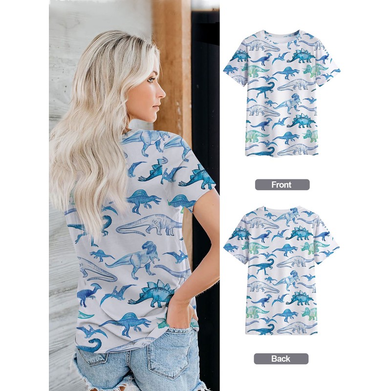 RMCMS Women Cute Dinosaur Graphic Prime Tees Ladies Bestie Fun Shirt Blouse Tops