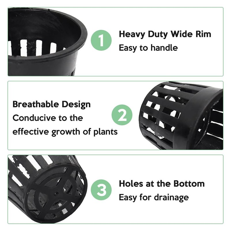 - Easy to Use:Net pots are designed with slotted mesh,which can promote a more efficient plant growth through aeration,with the holes in the bottom you can produce more healthy roots and better drainage, allow the roots grow with their own way.
