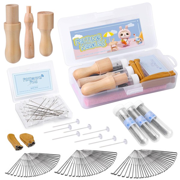 - EASY TO STORE: These felt needle tools can be neatly organized in plastic needle bottles, so you don't have to worry about losing your tools. 3 kinds of wood handle tools are individually wrapped and can be replaced with any size needles free for your convenience. Use it vertically and keep it away from youth