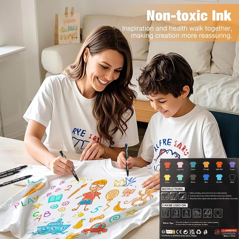 Our fabric markers are absolutely safe for children. Highly pigmented ink, they are non-toxic, odorless, fade-resistant, washable, dry quickly, and can be hand washed or machine washed.