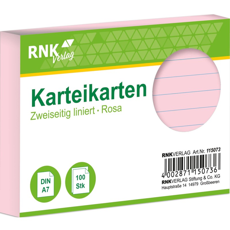 RNK 115073 Index Cards A7 Pack of 100 Pink