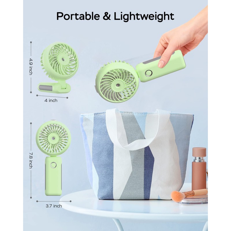 RNKRUN Portable Handheld Misting Fan, 4000mAh USB Rechargeable Personal Foldable Fan with Water Tank Battery Operated Spray Water Mist Makeup Small Face Steamer for Travel Outdoors Office matcha