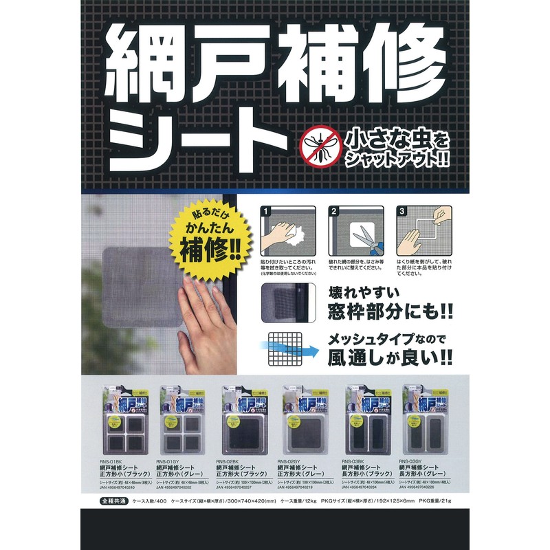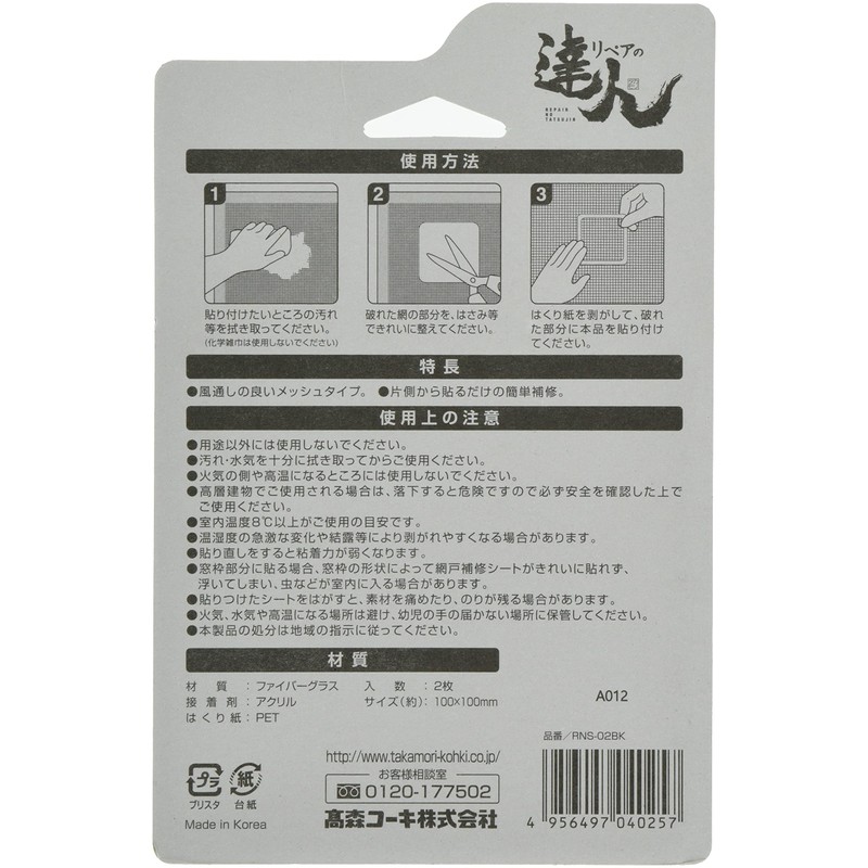 RNS-02BK Screen Door Repair Sheet, Square, Large, Black, 3.9 x 3.9 inches (100 x 100 mm), Pack of 2