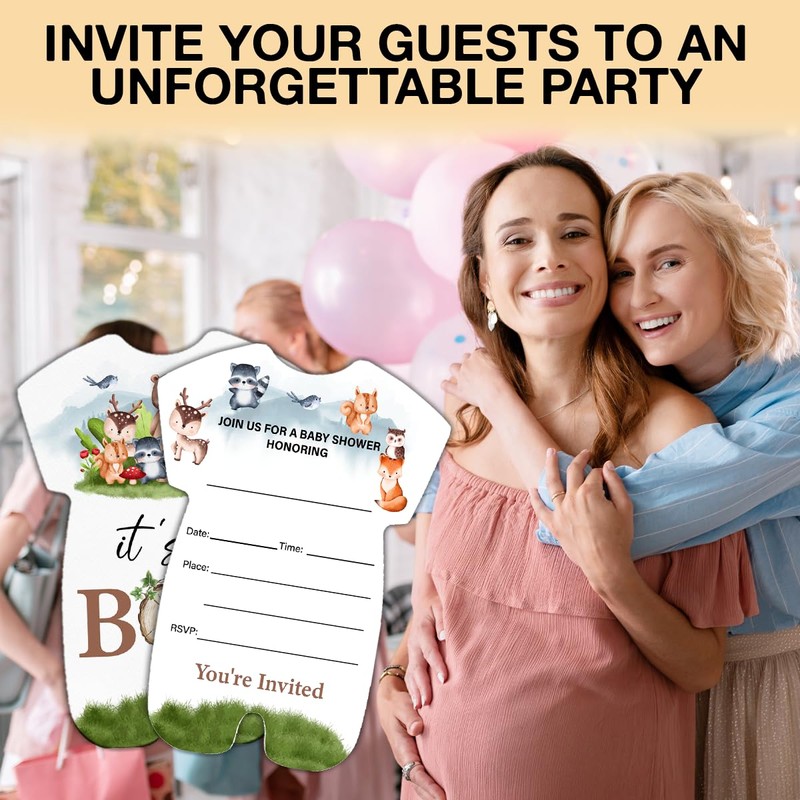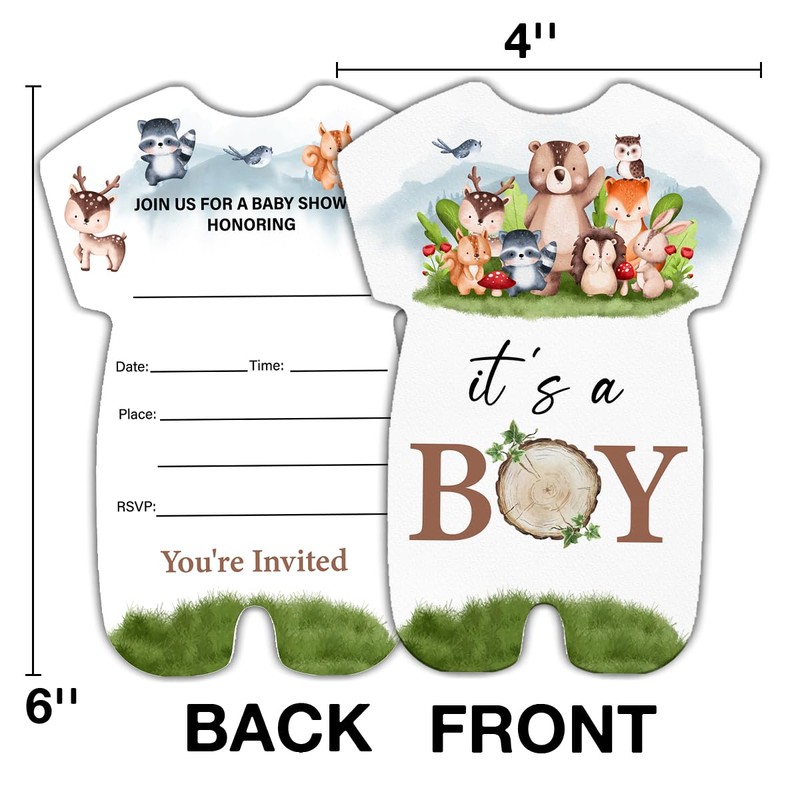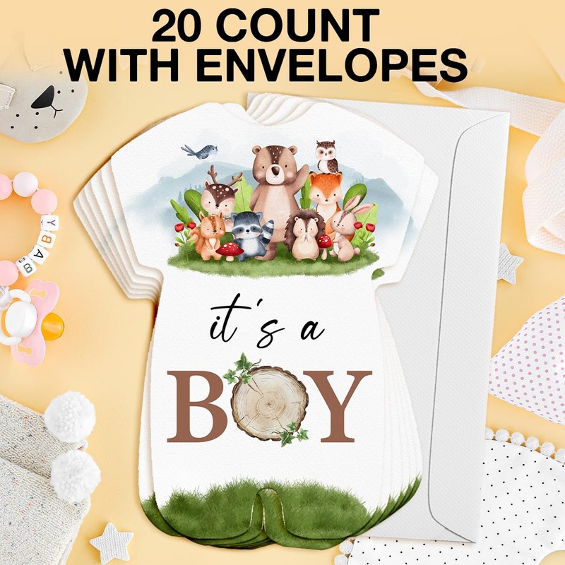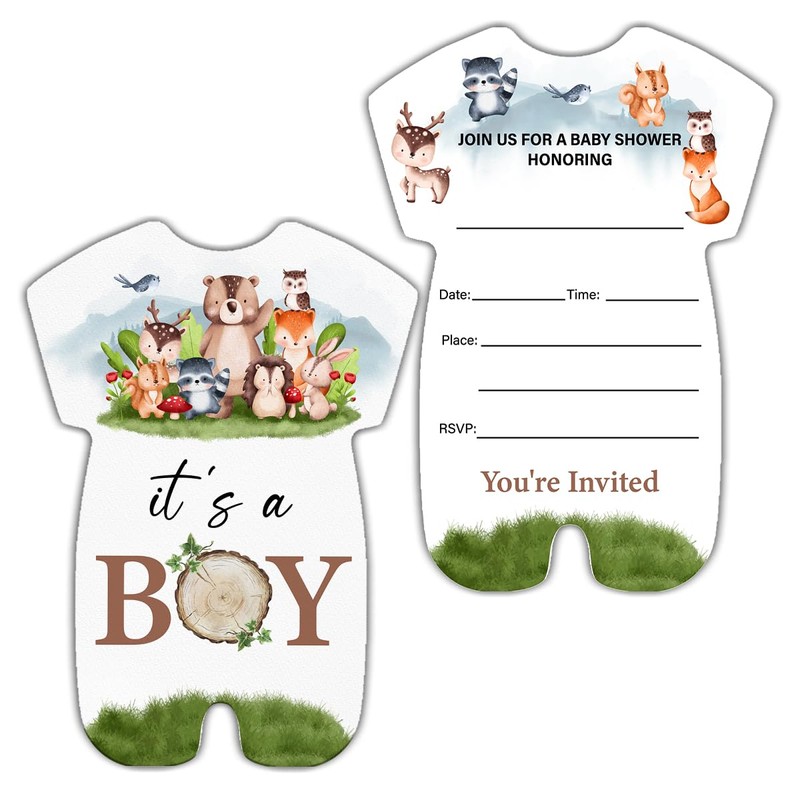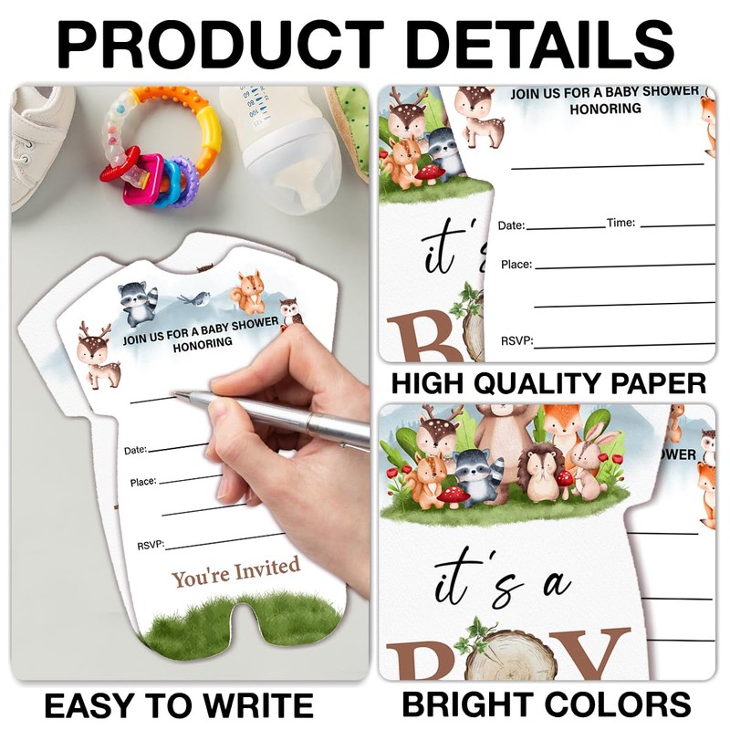 RNYJJ It's a Boy Woodland Baby Shower Invitations With Envelopes (20 Count), Forest Animals Baby Shower Party Fill in Invites Cards, Double Sided Design