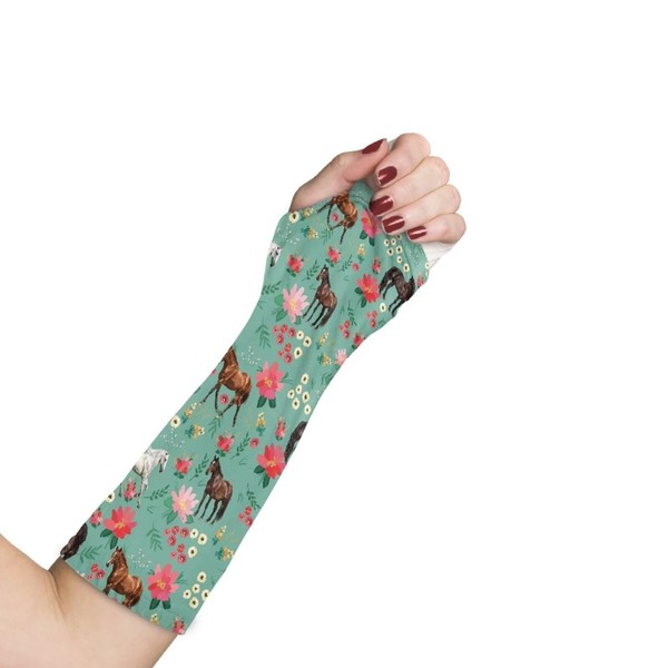 Rnyleeg Arm Cast Cover for Shower Length 9.4 Inch x 8-10 Inch Flower Horse Arm Plaster Cover for Women Men Washable and Removable