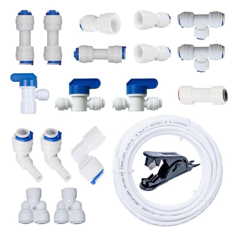 - Kit Also includes: 1 Tube Cutter, and 25 feet of 1/4" OD, NSF Certified Water Tubing.