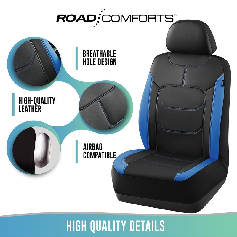 - Stylish Design: Available in various colors, the Road Comforts Leather Front Car Seat Cover adds a touch of elegance to your vehicle's interior, complementing your personal style.