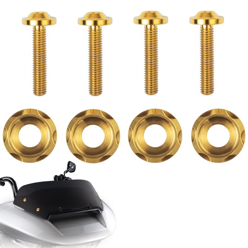 - Striking Appearance: A special electroplating process gives the harley windshield bolts a brilliant shine and vibrant colors. The luxurious gold bolts, in particular, add a unique personality and a touch of elegance to your motorcycle.