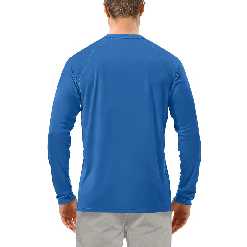 Roadbox Mens UPF 50+ UV Sun Protection Shirts Outdoor Long Sleeve SPF Diving Rash Guard for Fishing Hiking Swimming Vivid Blue