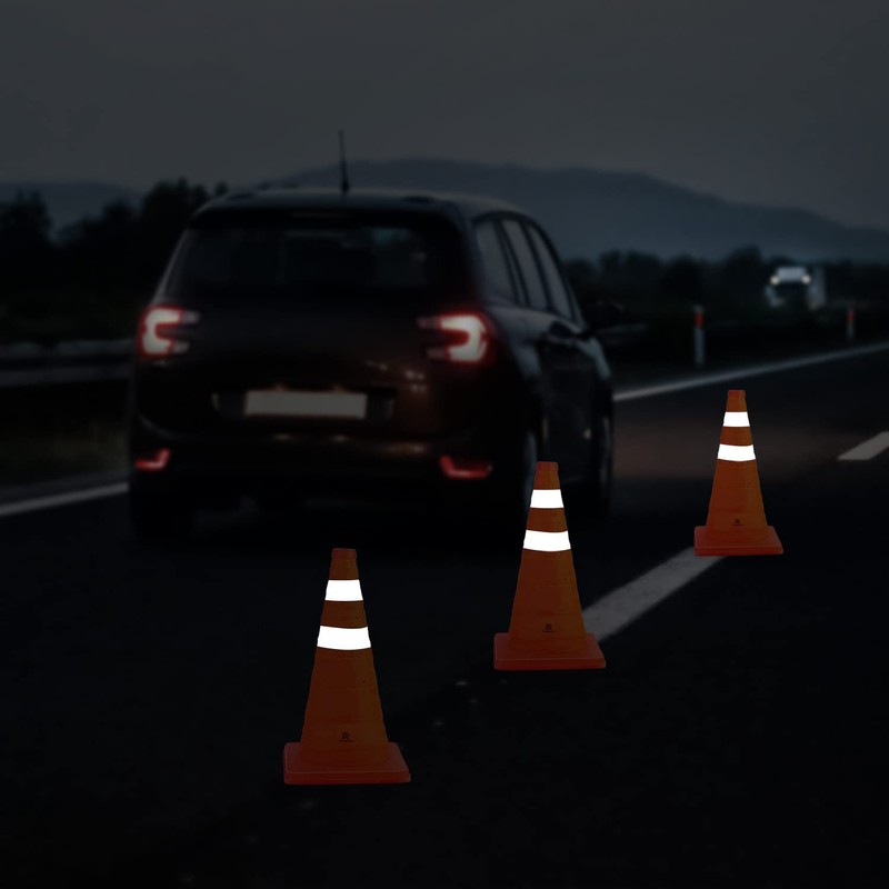 - Altamente visible: el color naranja brillante de seguridad y los collares reflectantes de 360 grados hacen que los conos de estacionamiento paralelos sean visibles desde una larga distancia durante el día o la noche
