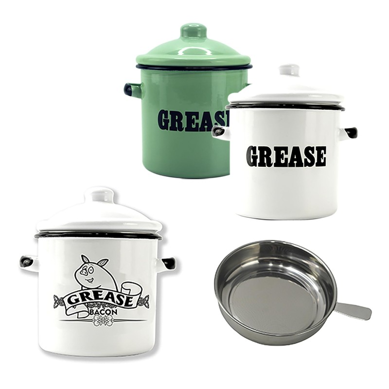 Roadmap 1.5L White Enamel Bacon Grease Container with Strainer, Grease Canist...