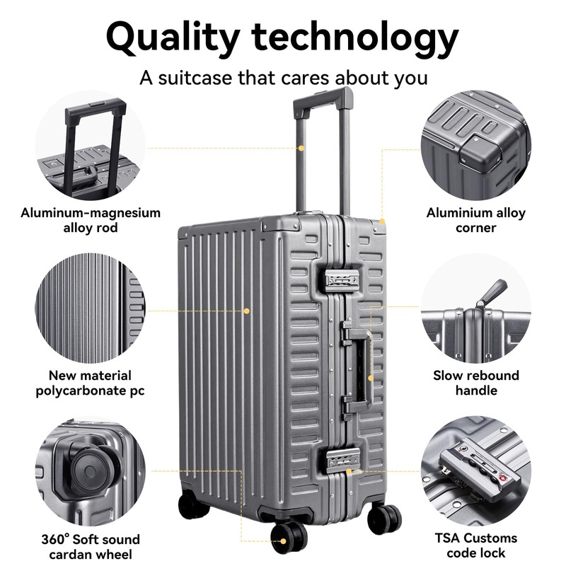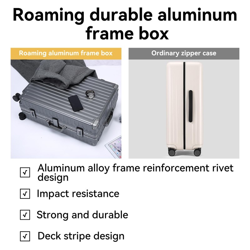 - 【Sleek Industrial Design】Experience the ideal fusion of modernity and sophistication in our luggage design which exudes fashion-forwardness—making it a stylish statement wherever you go. This zipperless luggage facilitates seamless travel experiences while providing security for checked belongings during international trips—eliminating common zipper-related issues.