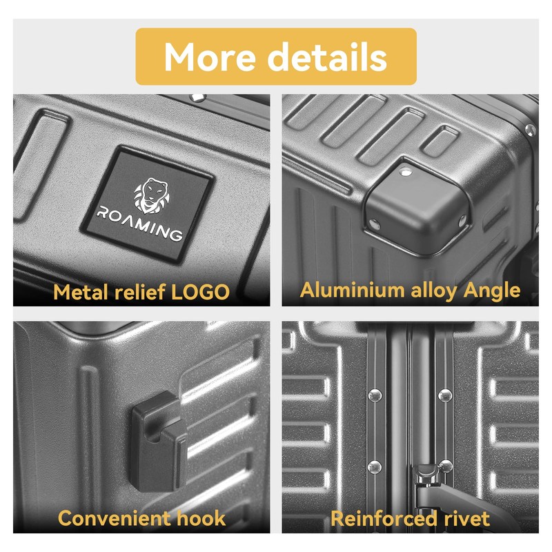- 【Durable Corner Protectors】This hard-sided luggage is equipped with four aluminum corner protectors reinforced by an aluminum frame to provide robust protection against impacts and extreme temperatures, ensuring your luggage remains intact even under demanding travel conditions.