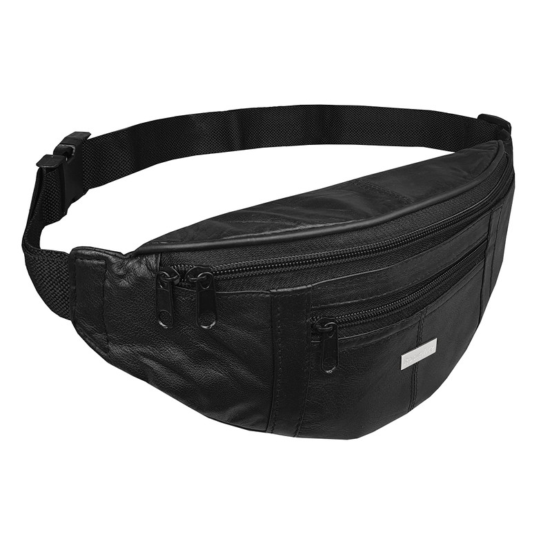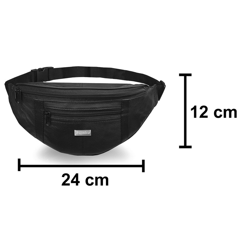 - STANDARD MEDIUM SIZE - Ladies or Men's soft plain black leather bumbags for up to 47 inch waist, 67 inches with optional extension piece