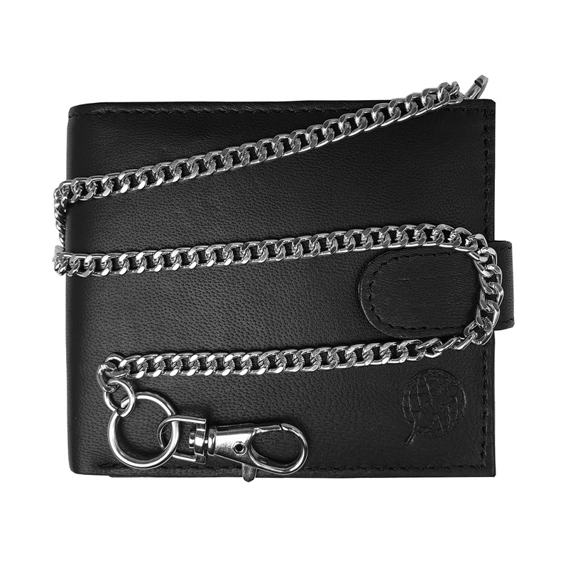 Die Geldbörsenkette ist 43 cm lang mit einem Gürtelschlaufen-Befestigungsclip an einem Ende und fest am anderen Ende befestigt.