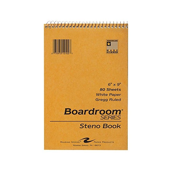 Roaring Spring Boardroom Series Gregg Ruled Spiral Steno Memo Book, 6" x 9" 80 Sheets, White Paper