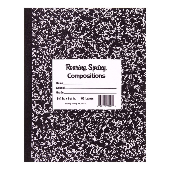 Roaring Spring Paper Products Composition Book, Marble Design, Black (ROA77505), 10" x 8" 60 Sheets