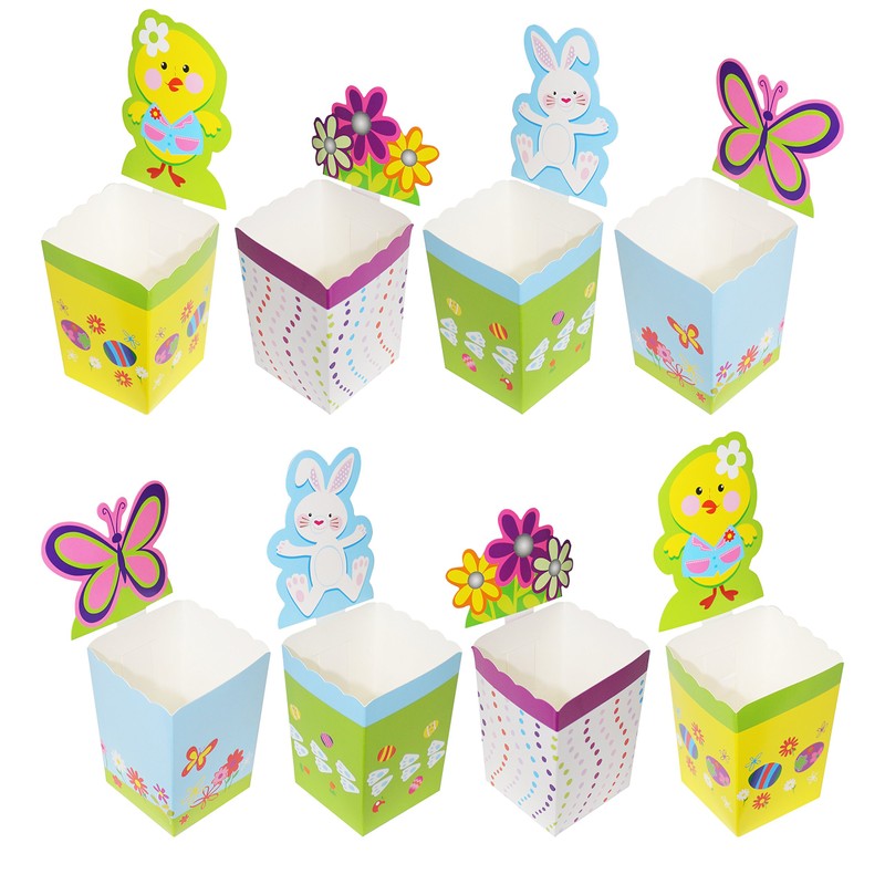 - Pack of 8 card Easter themed flatpack boxes. Very easy to assemble