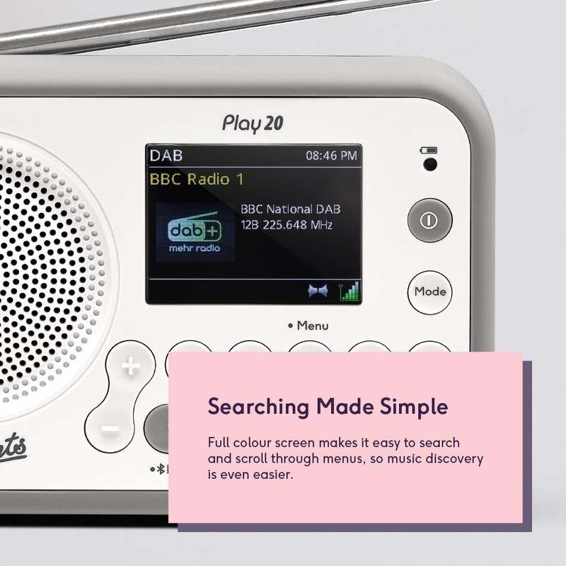 Roberts PLAY20 Compact and Portable DAB/DAB+/FM Digital Radio, Rubber-Protected, Full Colour Screen, White