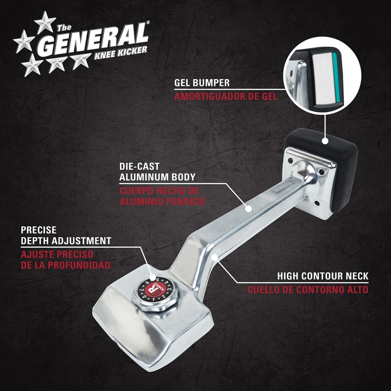 - 5" wide head is 25% wider than standard knee kickers head for improved load distribution