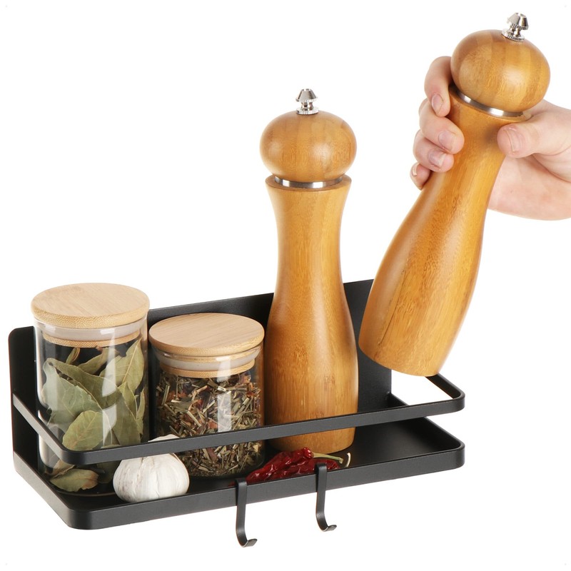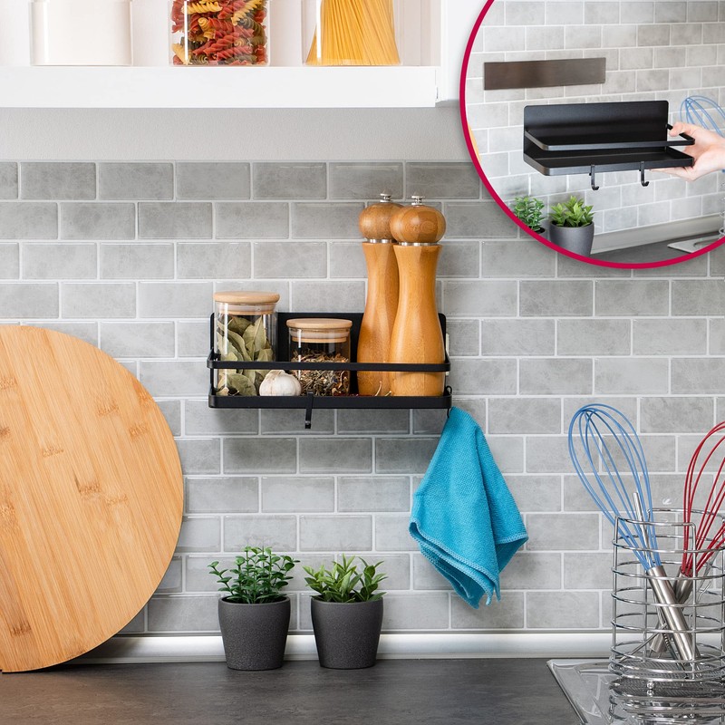 Robin Goods® Fridge Magnetic Shelf, Hanging Shelf with 2 Hooks, Kitchen Shelf Magnetic for Spices Made of Metal, Magnetic Shelf, Organiser Maximum Load 6 kg (Pack of 1, Black)